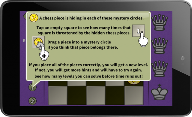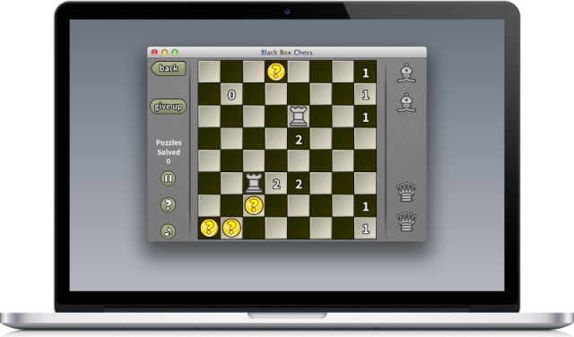 Black Box Chess was an oddly addictive little puzzle game from the 1990's, and now the best-ever reboot of the game is available for your mobile device. Chess pieces are hiding all over a chessboard, and you can click around to give yourself some clues. But don't get too many clues, as they cut into your points. See how many pieces you can find before time runs out. Also includes "Zen" mode for more relaxed no-time-limit play.