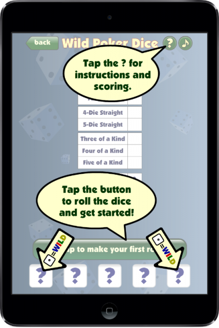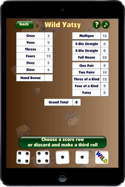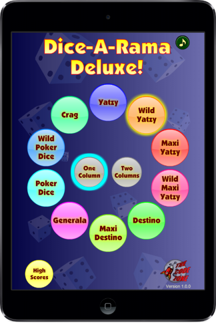Dice-A-Rama Deluxe contains the original five Dice-A-Rama dice games as well as five brand new ones. In addition to the two Yatzy games in the original, there are two new variations with "WILD" dice. You also get a new Poker Dice game with wild dice, an exclusive game called "Maxi Destino", and a really frustrating quick-playing game called "Crag".