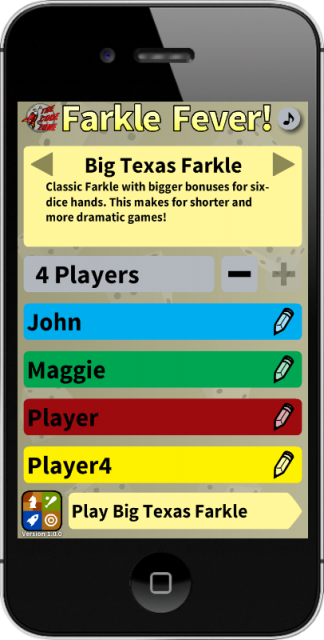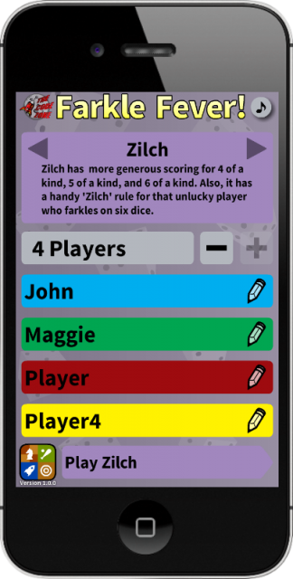If you are a fan of dice games, this belongs on your list. Farkle Fever is a collection of six different great "press your luck" dice games that can be played solitaire or with up to four players. Included is the classic "Ten Thousand" version, as well as some high-bonus variations, a cutthroat version called "Hurdle Farkle", a "Farkle-less" variant called Zilch, and even one with a side-bet.