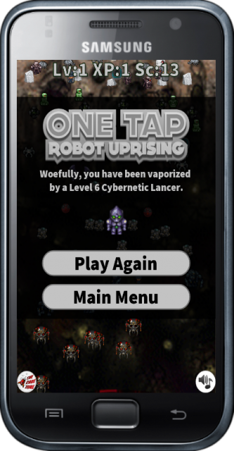 You are charged with stopping the rule of the giant evil robots. It's actually quite simple. Just defeat the weak robots first. Level up. Pick up some weapons and helpers along the way. And shut down the main CPU. Oh, you must also do all that with only one tap. Good luck, soldier!