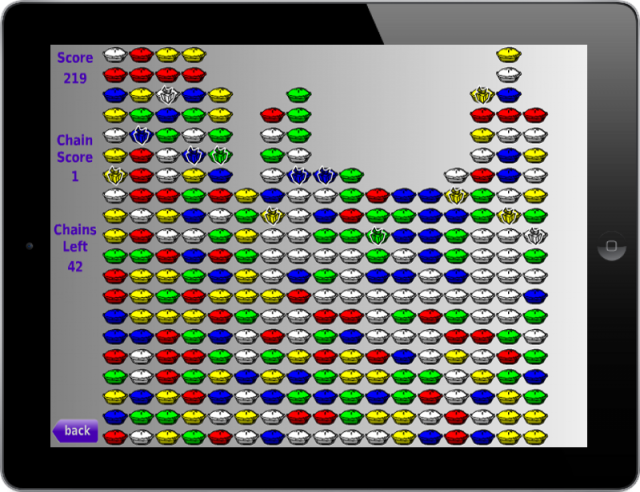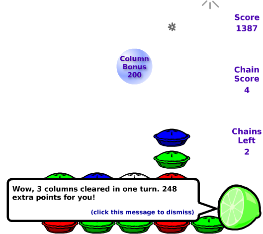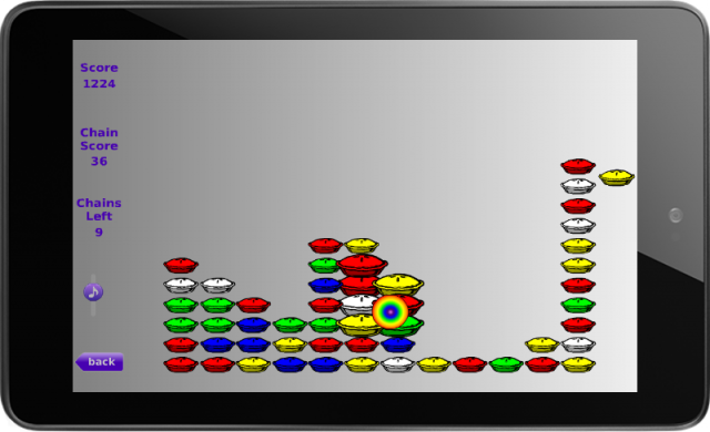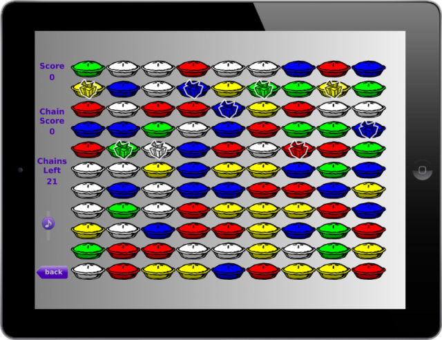 It's simple addictive fun. Explode chains of like-colored pies for points. The bigger the chain of pies you explode, the more points you get. Release gifts for points or bonuses.